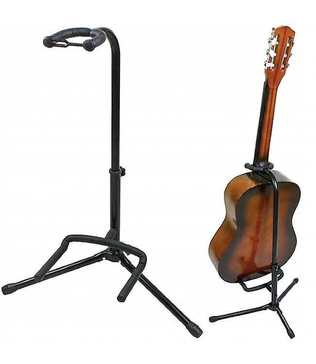 - Kvaliteetsest terasest alus sobib kõikidele kitarridele. Tugeva konstruktsiooniga alus kestab aastaid. Eemaldatav ühendus võimaldab teil vajadusel reguleerida aluse kõrgust. Pehme hoidik ja põhjas olev kinnitus kaitsevad kitarri kahjustuste eest. Libisemisvastane kummist kaitse kaitseb põrandat kriimustuste eest ja tagab täiendava stabiilsuse. Kokkupandavat alust on mugav hoida ja transportida.